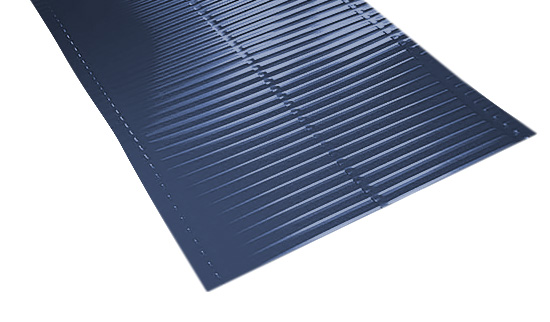 Синий цвет, придаваемый покрытием ФЭЗ, добавляет эстетичности кровельной системе и позволяет гармонично вписать ребристый желобок в общий дизайн здания.