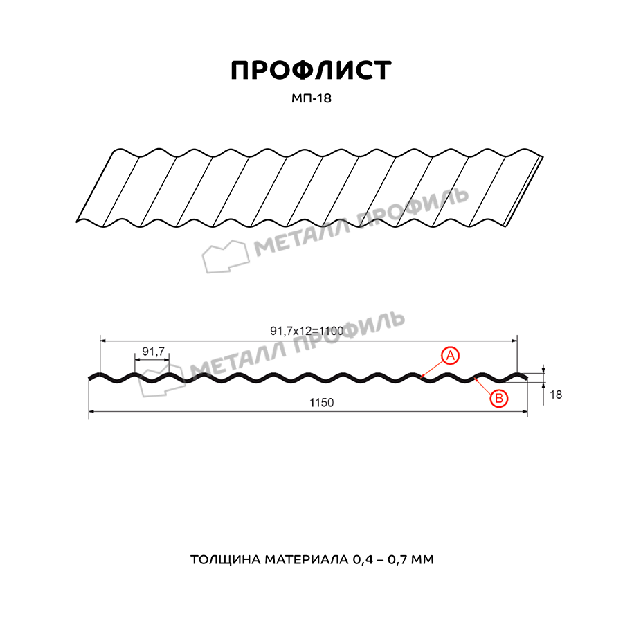 Профиль МП-18 имеет толщину 0,5 мм, что обеспечивает прочность и долговечность конструкции.